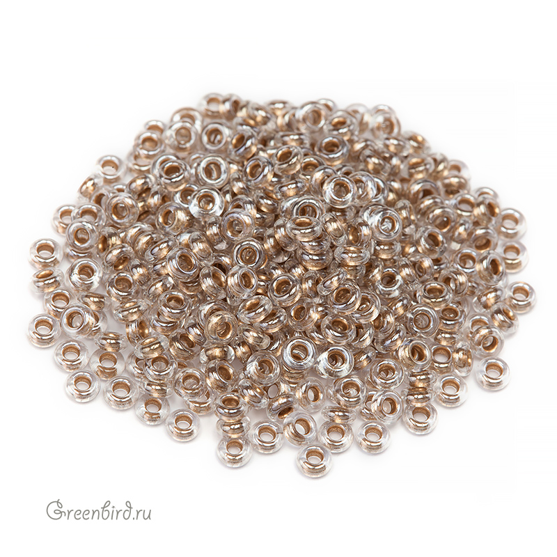 Японский бисер Demi Round TOHO, размер 8/0. Цвет: #989 (внутренняя позолота, хрусталь). Размер 1,2 х 3 мм, отверстие 1 мм. Цена указана за 5 грамм (примерно 340 шт).