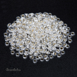 Японский бисер Demi Round TOHO, размер 8/0. Цвет: #PF21 (Permanent Finish внутреннее серебрение, хрусталь). Размер 1,2 х 3 мм, отверстие 1 мм. Цена указана за 5 грамм (примерно 340 шт).