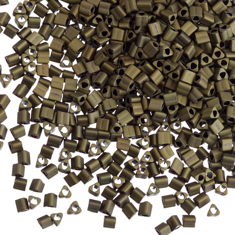 Японский бисер TOHO — треугольный (TOHO triangles), размер 11/0. Отверстие 0,85 мм. Цвет #617 (Matte-Color Dark Olive, матовый, радужный, темно-оливковый). Цена указана за 10 грамм (примерно 700 шт).