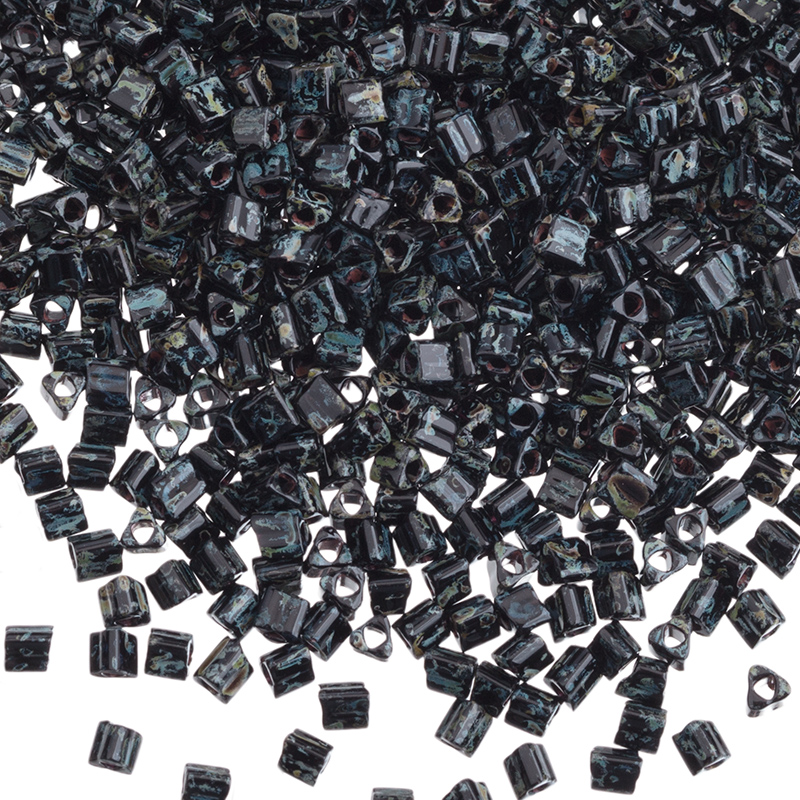Японский бисер TOHO — треугольный (TOHO triangles), размер 11/0. Отверстие 0,85 мм. Цвет #Y302 (HYBRID Jet - Picasso, hybrid Пикассо, черный). Цена указана за 10 грамм (примерно 700 шт).