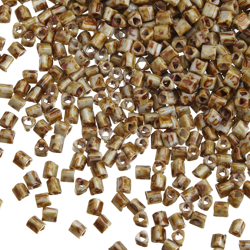 Японский бисер TOHO — треугольный (TOHO triangles), размер 11/0. Отверстие 0,85 мм. Цвет #Y312 (HYBRID Opaque Gray - Picasso, hybrid Пикассо, серый). Цена указана за 10 грамм (примерно 700 шт).