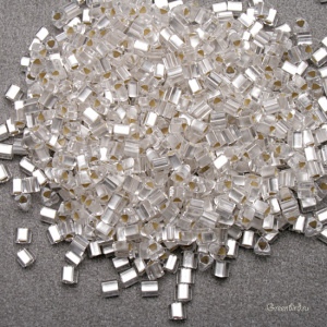 Японский бисер TOHO — треугольный (TOHO triangles), размер 11/0. Отверстие 0,85 мм. Цвет #21F (Внутреннее серебрение, матовый, хрусталь). Цена указана за 10 грамм (примерно 800 шт).