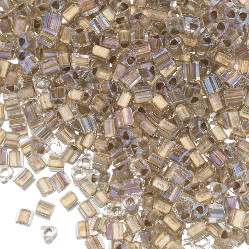 Японский бисер TOHO — треугольный (TOHO triangles), размер 11/0. Отверстие 0,85 мм. Цвет #262 (Окрашенный изнутри, хрусталь/золото). Цена указана за 10 грамм (примерно 800 шт).