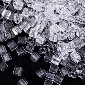 Японский бисер TOHO — треугольный (TOHO triangles), размер 8/0. Отверстие 1 мм. Цвет #1 (Transparent Crystal, прозрачный, хрусталь). Цена указана за 10 грамм (примерно 250 шт).