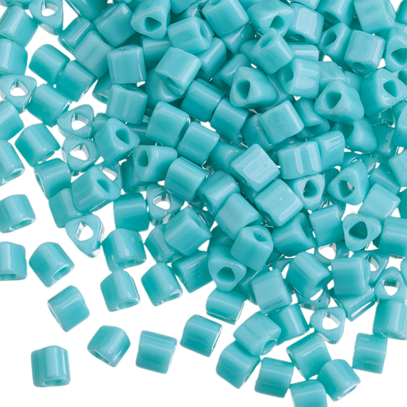 Японский бисер TOHO – треугольный (TOHO triangles), размер 8/0 (высота 3 мм). Отверстие 1 мм. Цвет #55 (Opaque Turquoise, непрозрачный, бирюза). Цена указана за 10 грамм (примерно 250 шт).