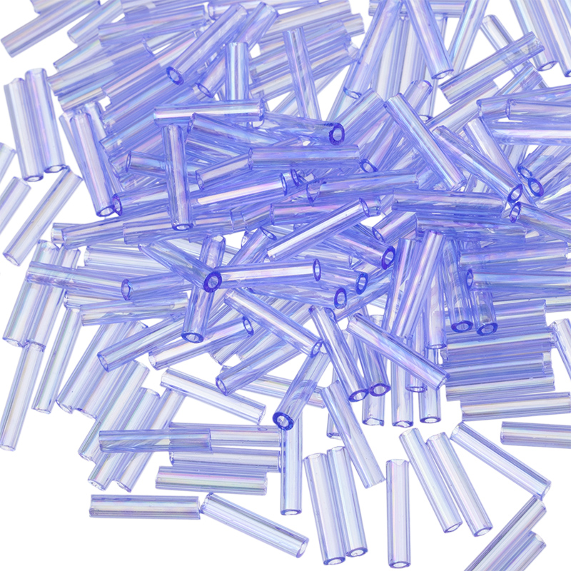 Японский бисер TOHO Bugle — стеклярус, размер #3 (9 мм). Цвет #168 (Transparent-Rainbow Light Sapphire, прозрачный радужный, светлый сапфир).
