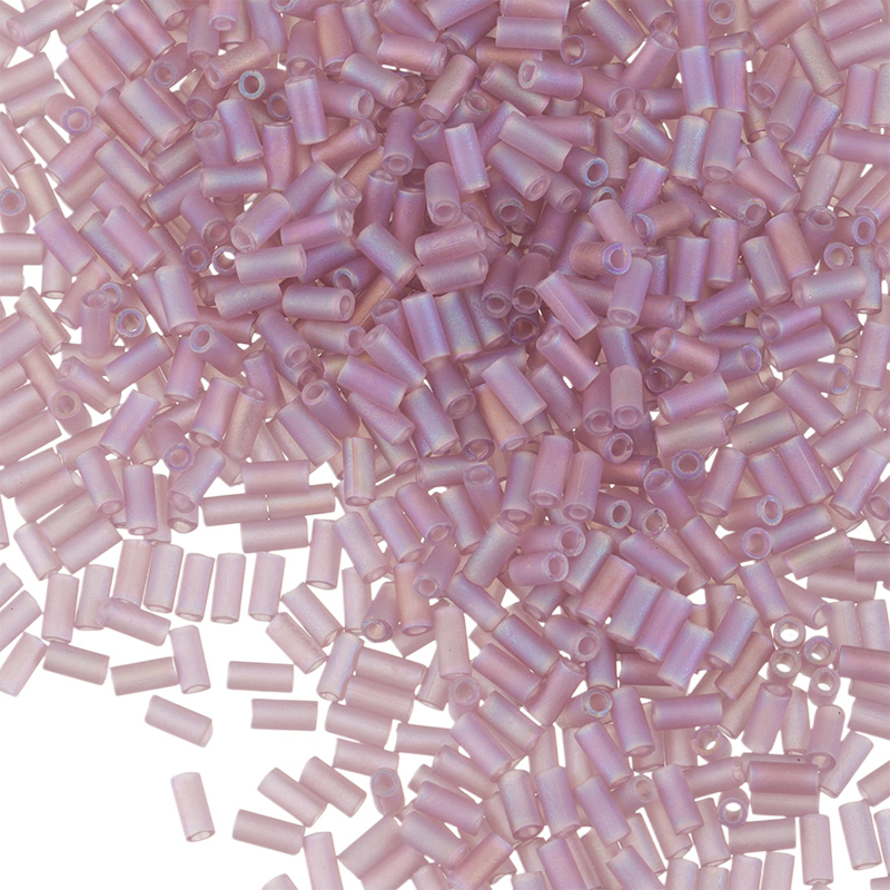 Японский бисер MIYUKI Bugle — стеклярус классической формы (стекло). Цвет: #142FR (дымчатый аметист), эффект: Matte AB (матовый радужный). Длина: 3 мм, диаметр: 1,5 мм, отверстие: 0,7 мм. Цена указана за 10 грамм (примерно 1000 шт).