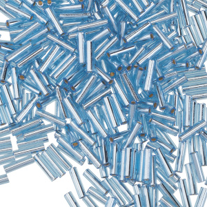 Японский бисер MIYUKI Bugle — стеклярус классической формы (стекло). Цвет: #066 (внутреннее серебрение / голубой). Длина: 6 мм, диаметр: 1,7 мм, отверстие: 0,7 мм. Цена указана за 10 грамм (примерно 400 шт).