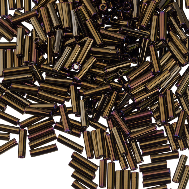 Японский бисер MIYUKI Bugle — стеклярус классической формы (стекло). Цвет: #458 (коричневый ирис). Длина: 6 мм, диаметр: 1,7 мм, отверстие: 0,7 мм. Цена указана за 10 грамм (примерно 400 шт).