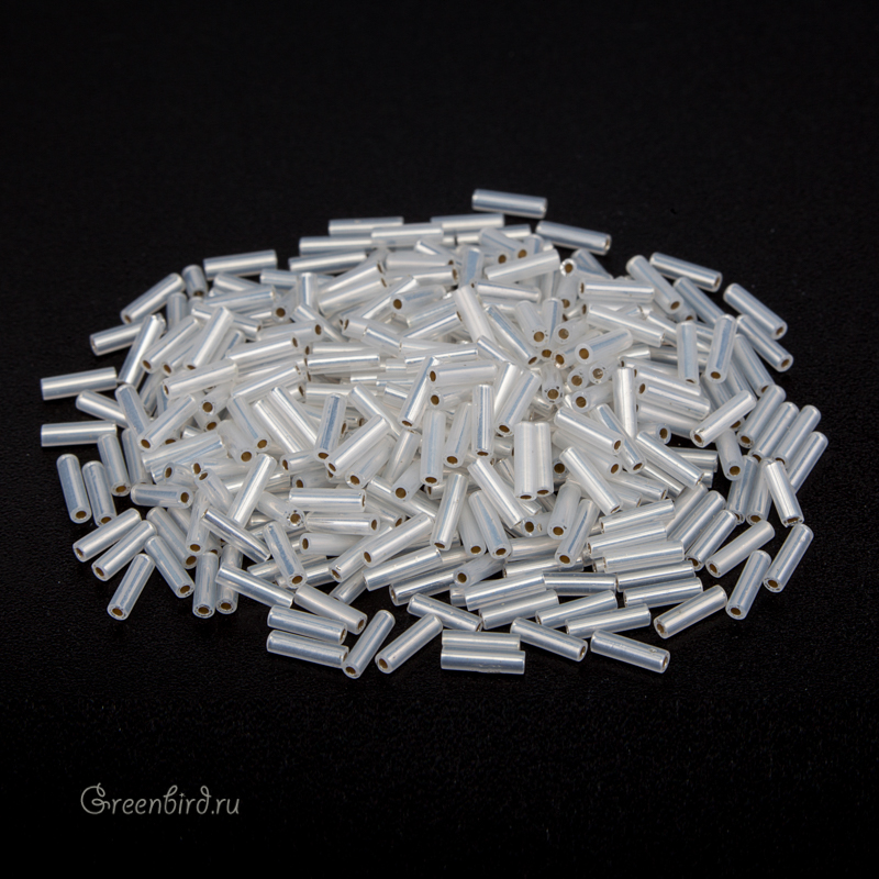 Японский бисер MIYUKI Bugle — стеклярус классической формы (стекло). Цвет: #551 (внутреннее золочение / белый опал). Длина: 6 мм, диаметр: 1,7 мм, отверстие: 0,7 мм. Цена указана за 10 грамм (примерно 400 шт).