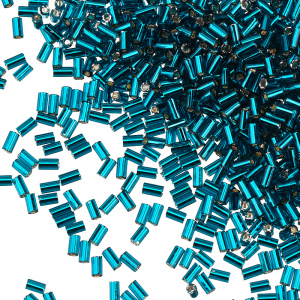 Японский бисер TOHO Bugle — стеклярус, размер #1 (длина 3 мм, диаметр 1,6 мм, отверстие: 0,7 мм). Цвет #27BD (внутреннее серебрение, капри). Цена указана за 10 грамм (примерно 790 шт).