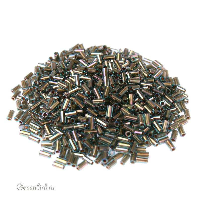 Японский бисер TOHO Bugle — стеклярус, размер #1 (длина 3 мм, диаметр 1,6 мм, отверстие: 0,7 мм). Цвет: #995 (Внутренняя позолота, радужная морская вода). Цена указана за 10 грамм (примерно 790 шт).