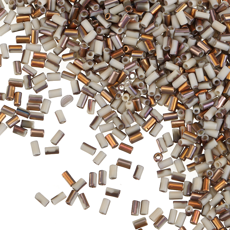 Японский бисер TOHO Bugle — стеклярус, размер #1 (длина 3 мм, диаметр 1,6 мм, отверстие: 0,7 мм). Цвет #Y856F (Матовый аполло, светло-серый). Цена указана за 10 грамм (примерно 790 шт).