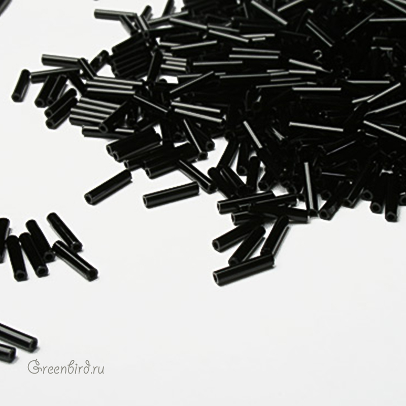 Японский бисер TOHO Bugle — стеклярус, размер #3 (9 мм). Цвет #49 (Непрозрачный, черный).
