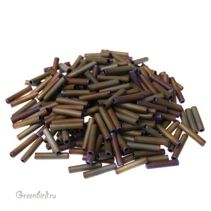 Японский бисер TOHO Bugle — стеклярус, размер #3 (9 мм). Цвет: #614 (Матовый радужный, коричневый). Цена указана за 10 грамм (примерно 240 шт).