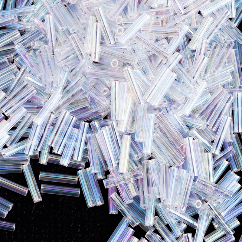 Японский бисер MIYUKI Slender Bugle — стеклярус классической формы тонкий (стекло). Цвет: #250 (бесцветный с перламутровым эффектом). Длина: 6 мм, диаметр: 1,3 мм, отверстие: 0,7 мм. Цена указана за 10 грамм (примерно 720 шт).