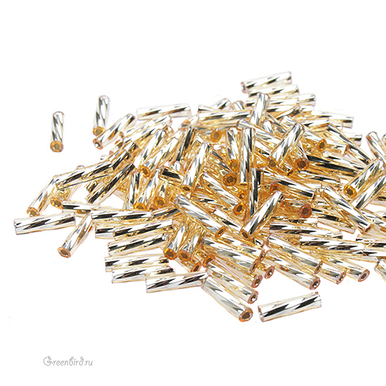 Японский бисер TOHO Bugle Twisted — витой стеклярус, размер: 9 мм, цвет #22 (внутреннее серебрение, светлый топаз). Цена указана за 10 грамм (примерно 180 шт).