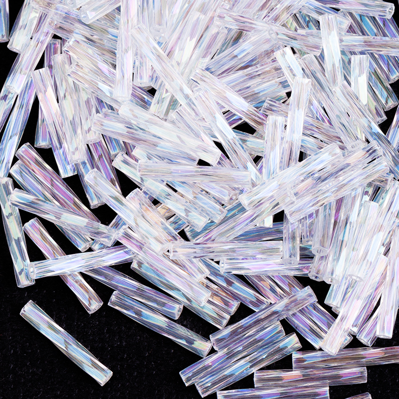 Японский бисер MIYUKI Twisted Bugle — витой стеклярус (стекло). Цвет: #250 (прозрачный с легким радужным эффектом). Длина: 12 мм, диаметр: 2 мм, отверстие: 0,7 мм. Цена указана за 10 грамм (примерно 90 шт).