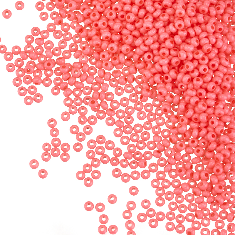 Чешский круглый бисер 11/0 (стекло). Цвет: #03691 (SALMON, непрозрачный, коралловый/оранжево-розовый). Размер: 2,1 мм, отверстие: 0,6 мм. Производство: Чехия. Цена указана за 10 грамм.