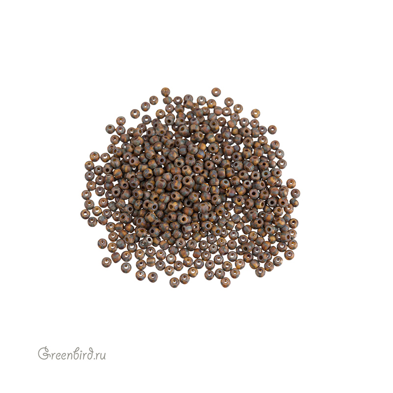 Чешский круглый бисер Preciosa Czech 11/0 (стекло). Цвет: #83520M-86800 (AGED YELLOW GREEN STRIPE TRAVERTINE, матовый, непрозрачный, состаренный желто-зеленый). Размер: 2,1 мм, отверстие: 0,6 мм. Производство: Чехия. Цена указана за 10 грамм.