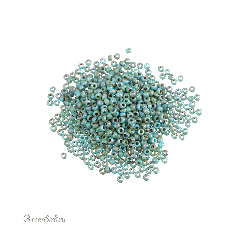 Японский бисер MIYUKI круглый, размер 11/0. Цвет #4514 (непрозрачный, зеленая бирюза, пикассо). Размер: 2 мм, отверстие: 0,8 мм. Производство: Япония. Цена указана за 10 грамм.