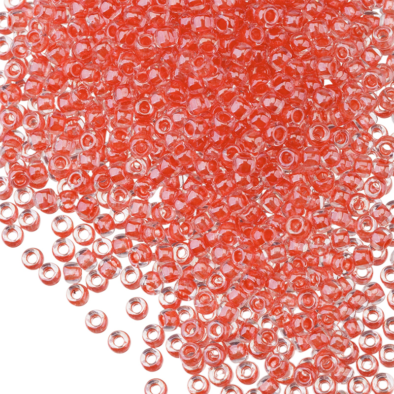 Японский круглый бисер TOHO, размер 11/0. Цвет #341 (Окрашенный изнутри, хрусталь/томат).