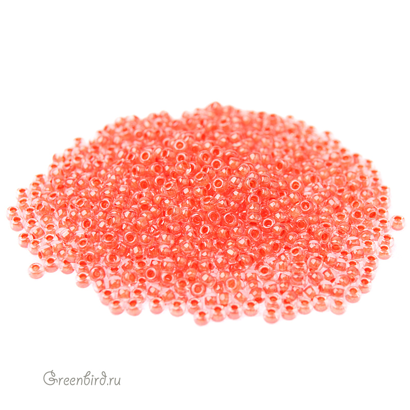 Японский круглый бисер TOHO, размер 11/0. Цвет #985 (окрашенный изнутри, хрусталь/лосось). Цена указана за 10 грамм.