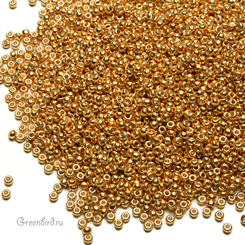 Японский круглый бисер TOHO, размер 11/0. Цвет #PF557 (Permanent Finish гальванизированный, золотой).