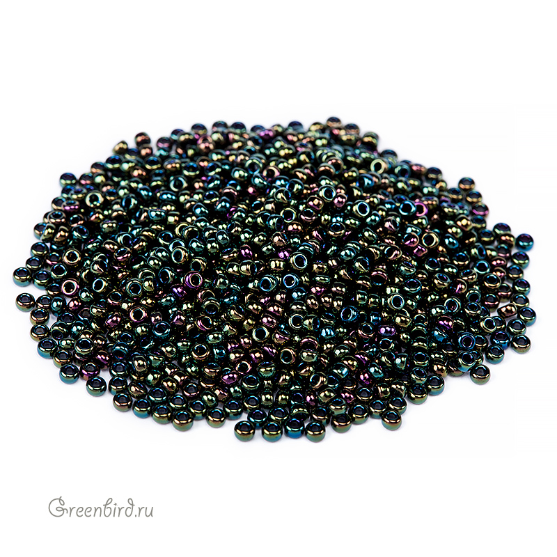 Японский бисер MIYUKI круглый, размер 11/0. Цвет #453 (металлизированный, зеленый ирис). Цена указана за 10 грамм.