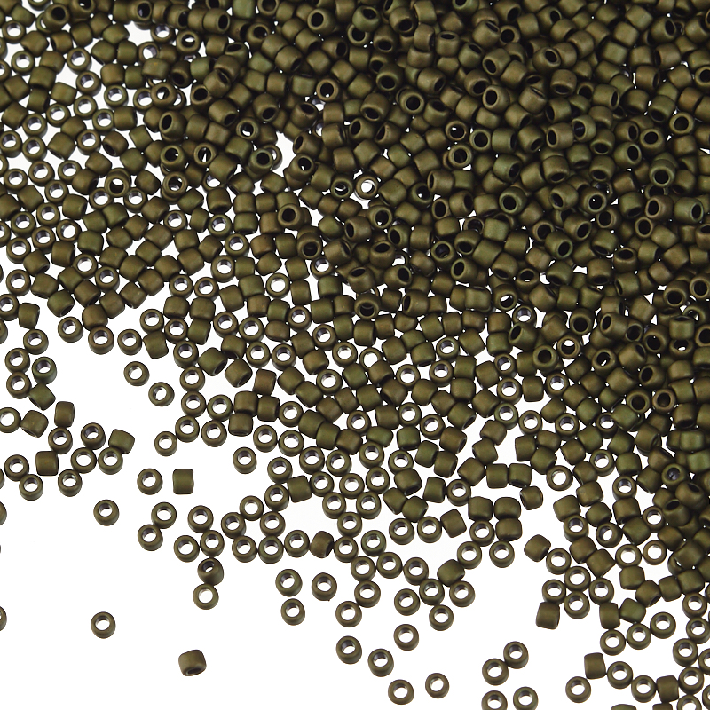 Японский круглый бисер TOHO, размер 15/0. Цвет #617 (Матовый, темно-оливковый).