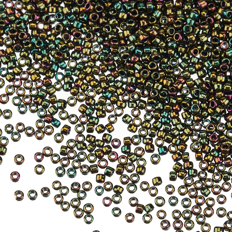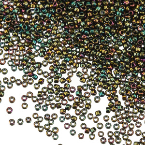 Японский круглый бисер TOHO, размер 15/0. Цвет #508 (Металлизированный золотом, радужный оливин).