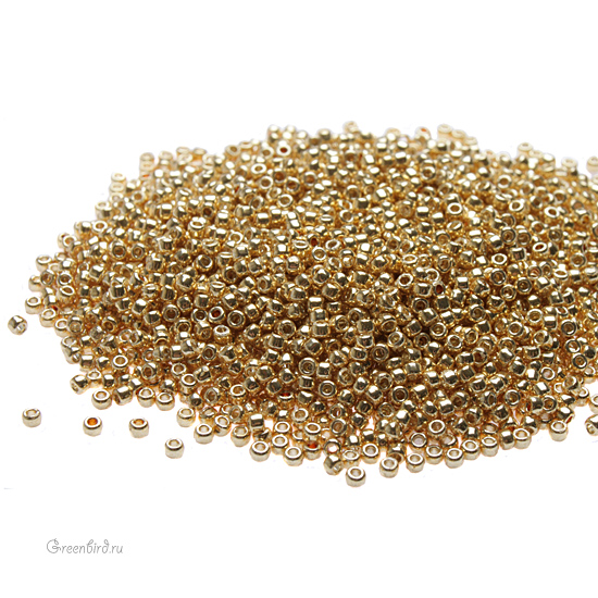 Японский бисер TOHO, размер 15/0. Цвет #PF557 (Permanent Finish гальванизированный, золотой). Цена указана за 10 грамм.