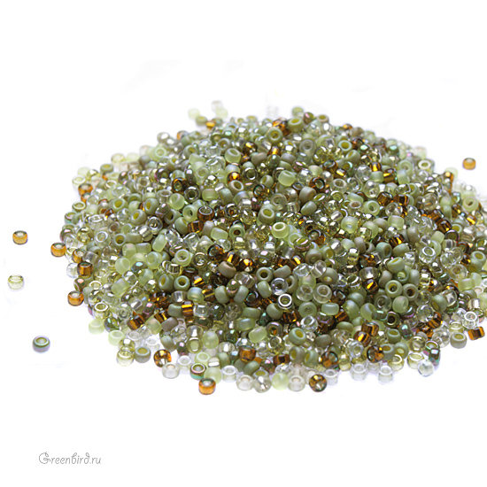 Японский бисер MIYUKI круглый, размер 15/0. Цвет #MIX55 (Микс Olive Medely, оливка). Цена указана за 10 грамм.