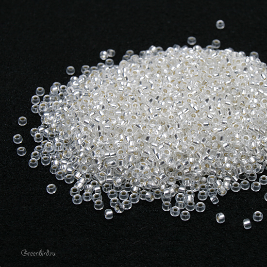 Японский бисер MIYUKI круглый, размер 15/0. Цвет #1 (Внутреннее серебрение, хрусталь). Цена указана за 10 грамм.
