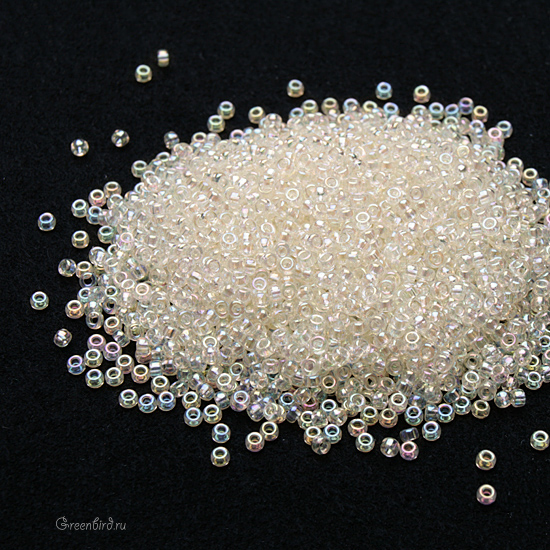 Японский бисер MIYUKI круглый, размер 15/0. Цвет #2442 (Радужный прозрачный, слоновая кость). Цена указана за 10 грамм.