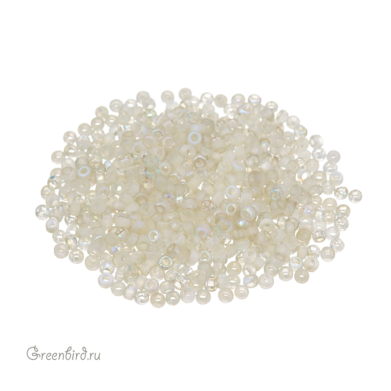 Чешский круглый бисер Preciosa Czech 8/0 (стекло). Цвет: #00030/98589 (хрусталь/зеленый, радуга), покрытие: Etched (шершавое стекло). Размер: 3 x 2 мм, отверстие: 1,3 мм. Производство: Чехия. Цена указана за 10 грамм (примерно 550 штук).