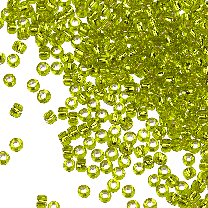 Японский круглый бисер TOHO, размер 8/0. Цвет #24 (внутреннее серебрение, зеленый лайм). Цена указана за 10 грамм.
