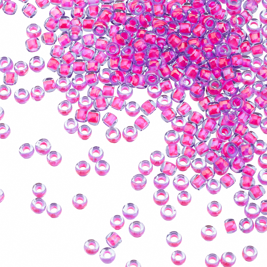 Японский круглый бисер TOHO, размер 8/0. Цвет #980 (окрашенный изнутри, светлый сапфир\розовый неон). Цена указана за 10 грамм.