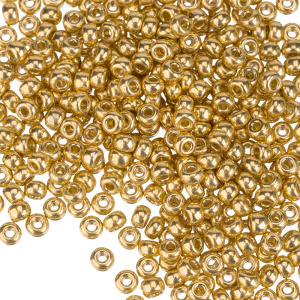 Японский бисер MIYUKI круглый, размер 8/0 - около 3,1 мм в диаметре, внутренний диаметр около 1,1 мм. Цвет #4202 (Duracoat Galvanized, золото). Цена указана за 10 грамм.