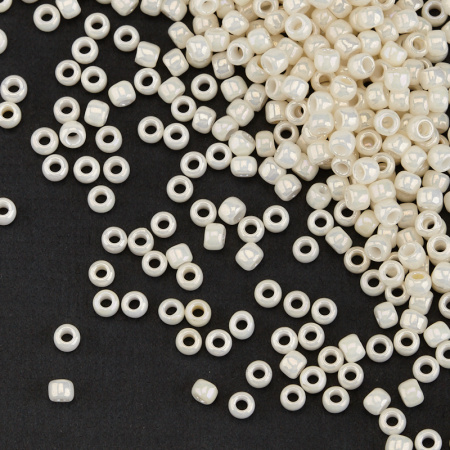Японский круглый бисер TOHO, размер 8/0. Цвет #122 (Непрозрачный глянцевый, кремово-белый). Цена указана за 10 грамм.