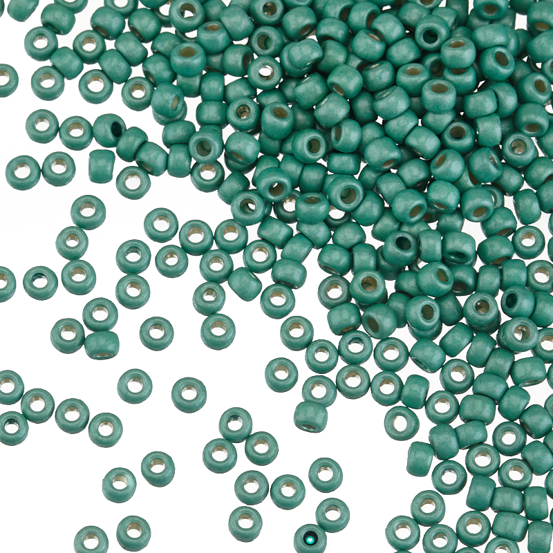 Японский круглый бисер TOHO, размер 8/0. Цвет #PF561F (Permanent Finish, гальванизированный матовый, зеленый чирок (Green Teal) – голубовато-зеленый).