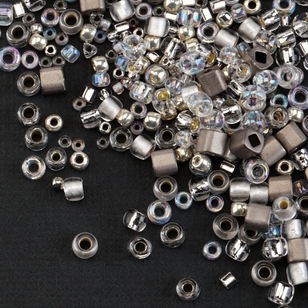 Японский бисер TOHO, смесь форм и размеров. Цвет: серебро (#3201). Цена указана за 10 грамм.