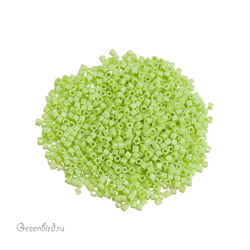 Японский кубический бисер TOHO Cube, размер: 1,5 мм, отверстие: 0,8 мм. Цвет: непрозрачный, зеленое яблоко (#44). Цена указана за 10 грамм.