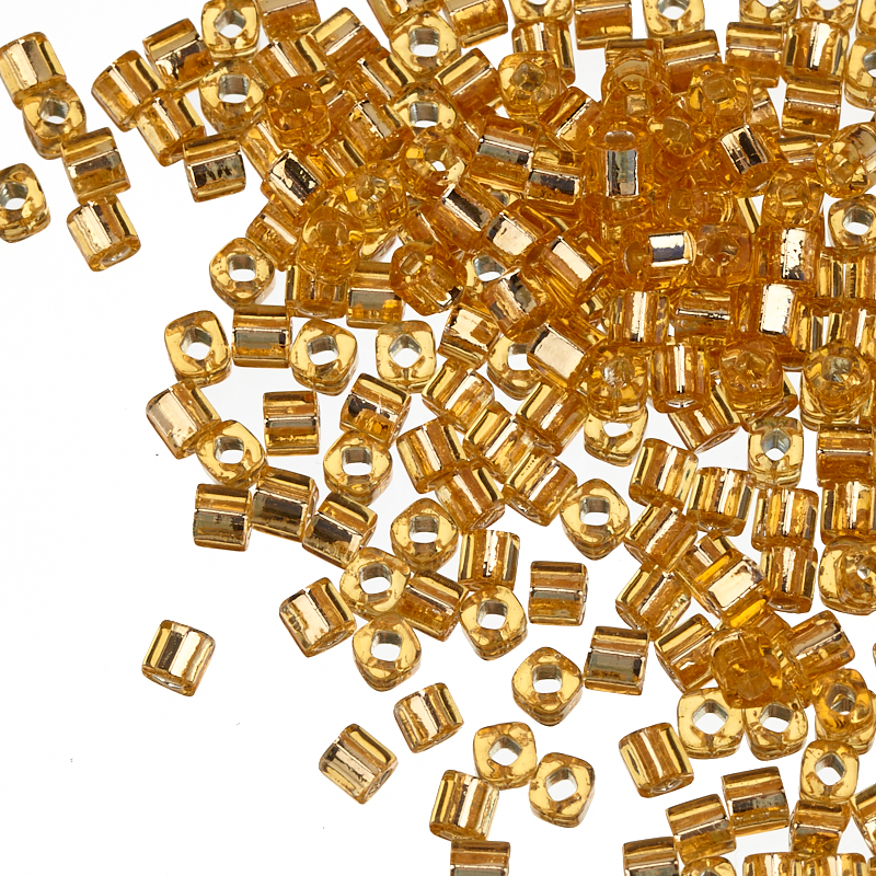 Японский кубический бисер TOHO Cube, размер: 3 мм, отверстие: 1,6 мм. Цвет: внутреннее серебрение, светлый топаз (#22). Цена указана за 10 грамм.