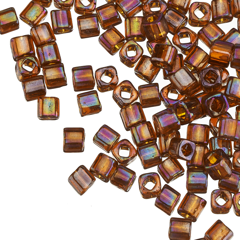 Японский кубический бисер TOHO Cube, размер: 4 мм, отверстие: 2 мм. Цвет: радужный прозрачный, дымчатый топаз (#177).