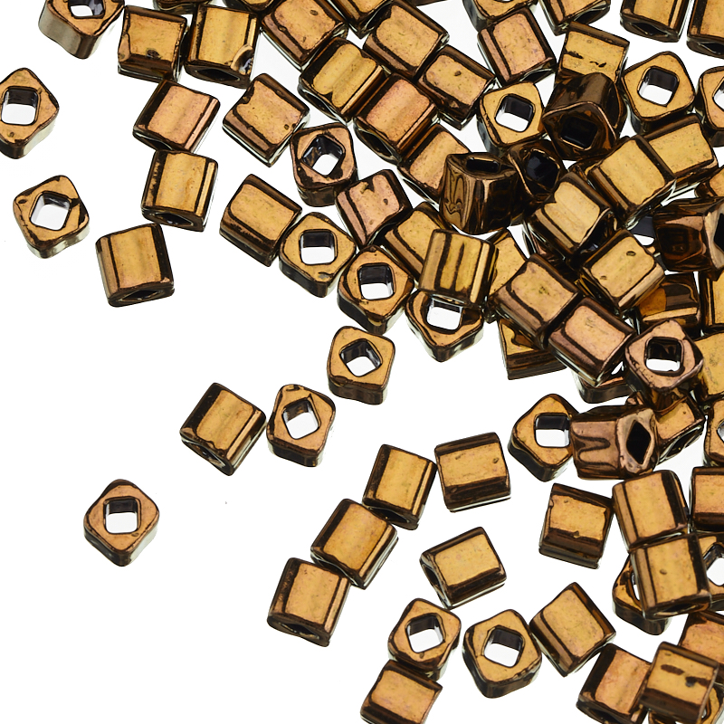 Японский кубический бисер TOHO Cube, размер: 4 мм, отверстие: 2 мм. Цвет #223 (Античная бронза).