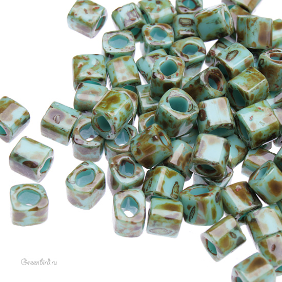 Японский бисер TOHO, кубический 4 мм. Цвет: #Y307 (Пикассо, бирюза). Цена указана за 10 грамм.