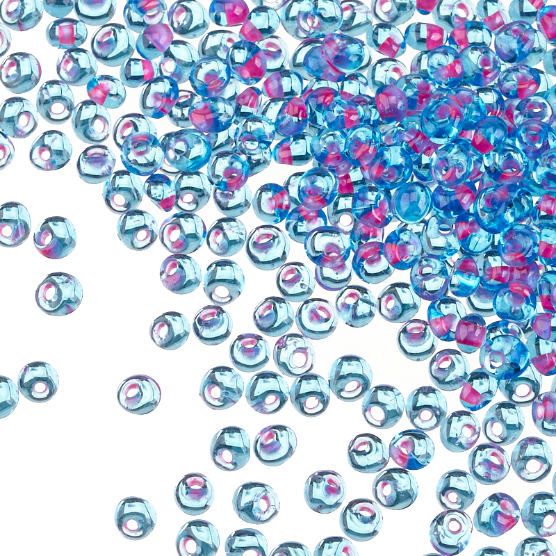 Японский бисер фирмы TOHO — магатамы (TOHO Magatama), размер 2,3 х 3,4 мм, отверстие 1 мм. Цвет #252 (Inside-Color Aqua/Purple-Lined, окрашенный изнутри, морская вода/фиолетовый). Цена указана за 10 грамм (примерно 330 шт).