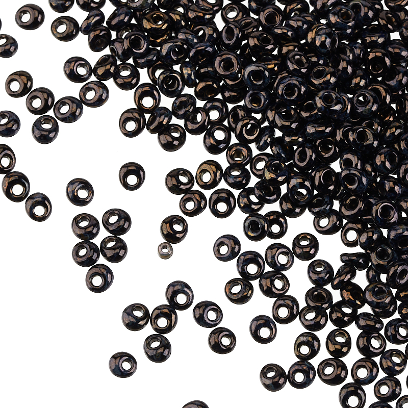 Японский бисер фирмы TOHO – магатамы (TOHO Magatama), размер 2,3 х 3,4 мм, отверстие 1 мм. Цвет #Y503 (Antiqued Metallic Black, античный черный металлик). Цена указана за 10 грамм (примерно 300 шт).
