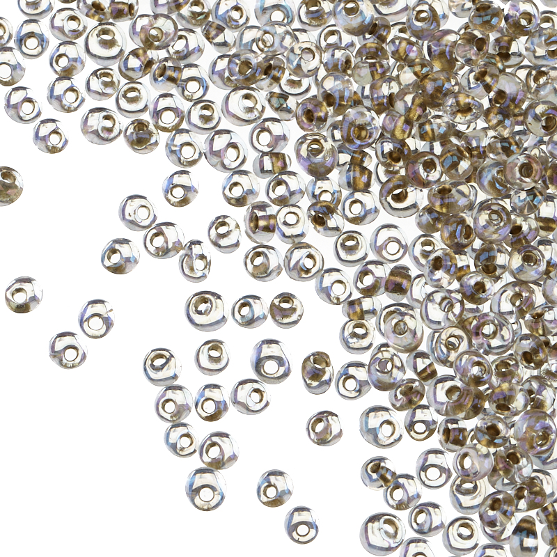 Японский бисер фирмы TOHO — магатамы (TOHO Magatama), размер 2,3 х 3,4 мм, отверстие 1 мм. Цвет #262 (Окрашенный изнутри, хрусталь/золото). Цена указана за 10 грамм (примерно 350 шт).